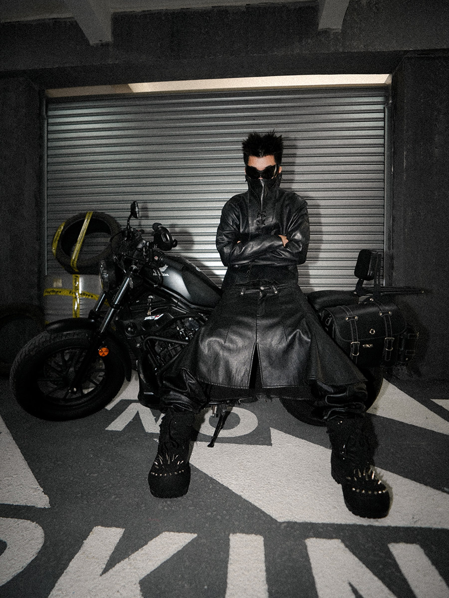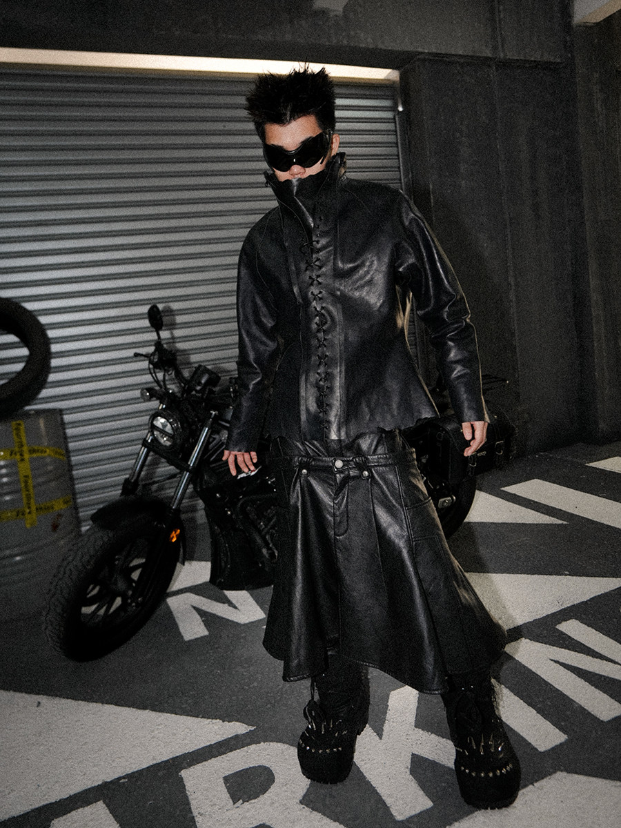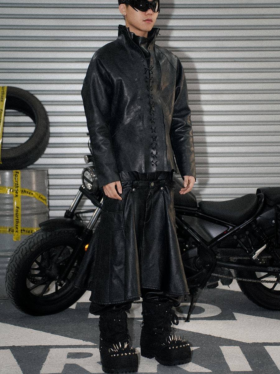 FourthSex 24Fw split-panel scimitar pleated leather pant skirt