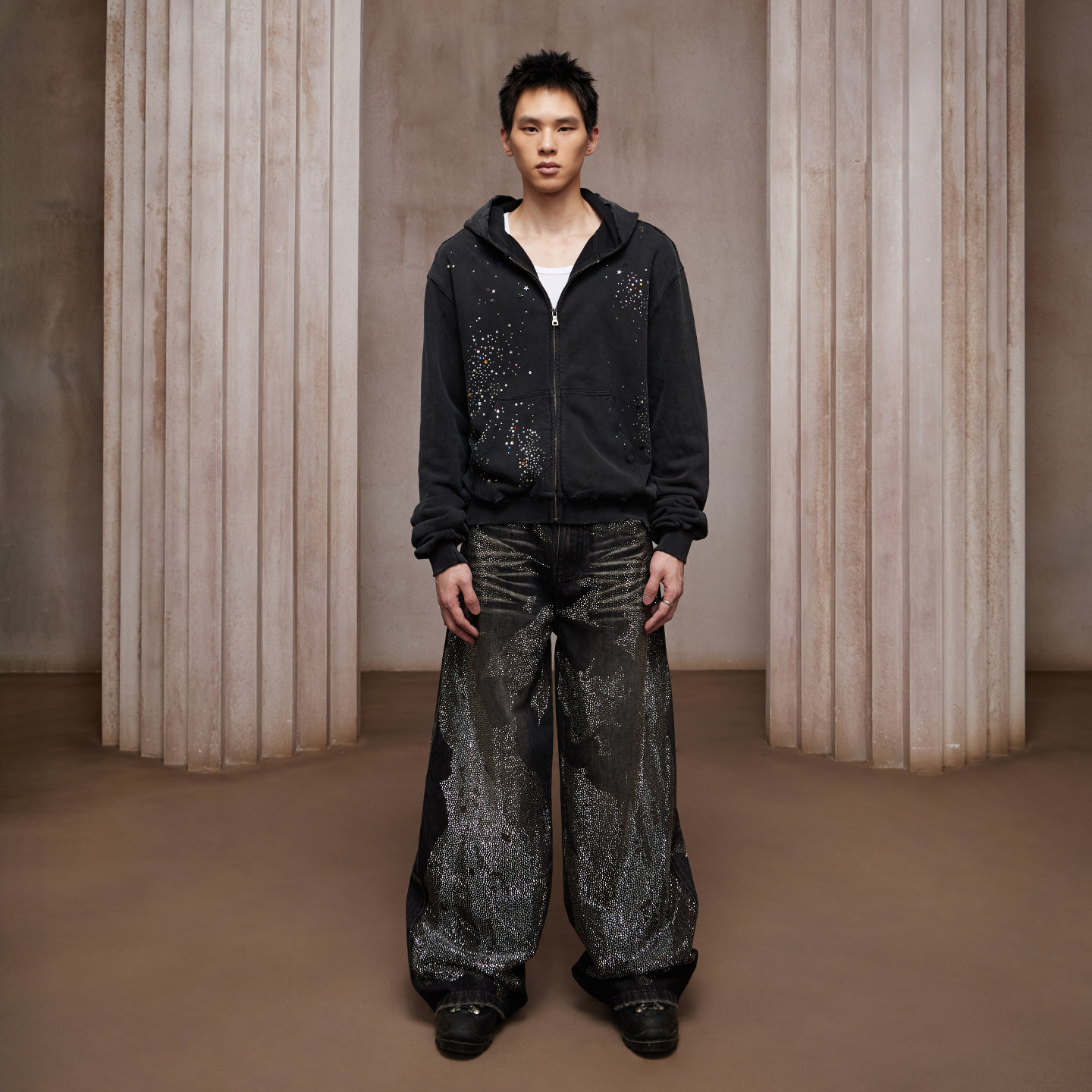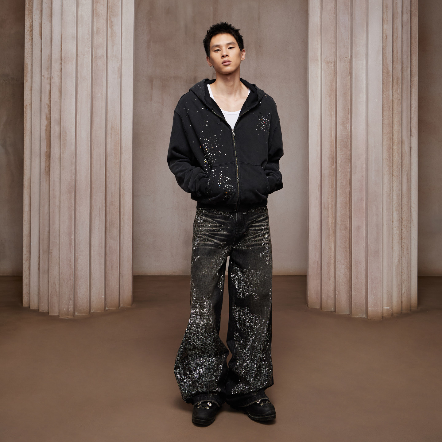 Processes: Water washing, hot-fix rhinestones