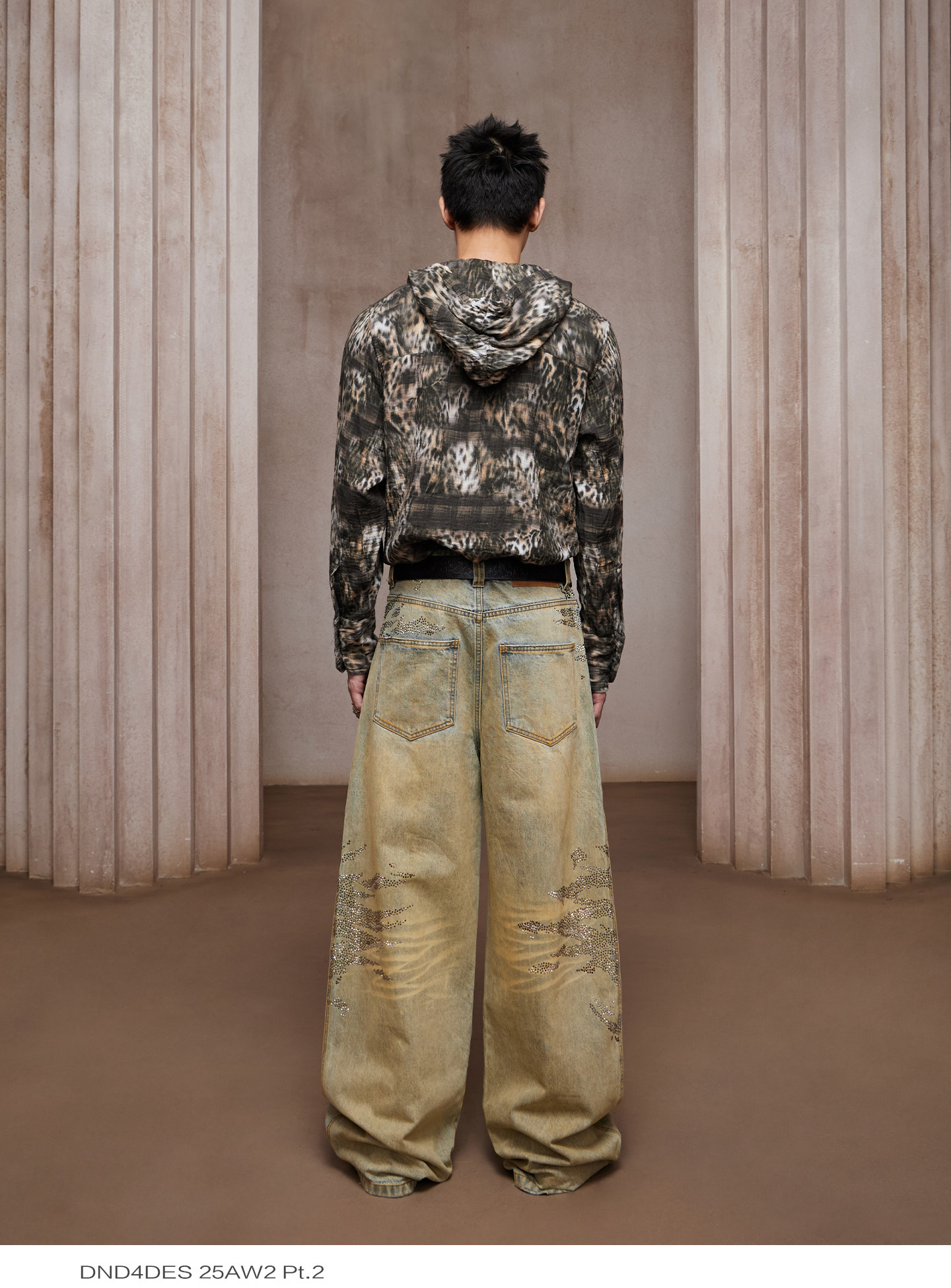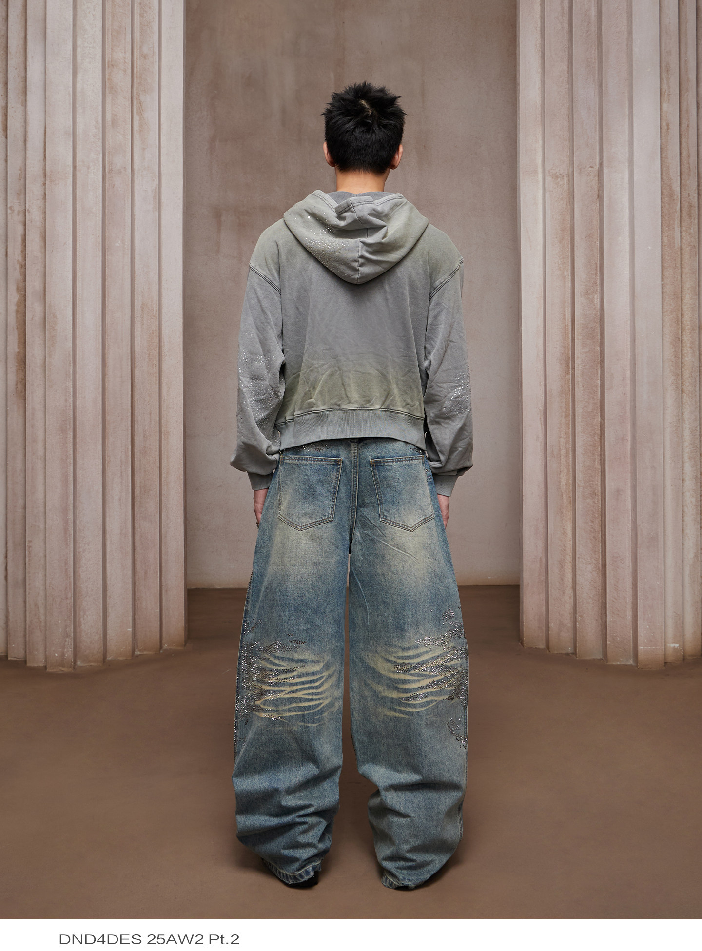 Style Details : distressed finish, gradient, asymmetrical