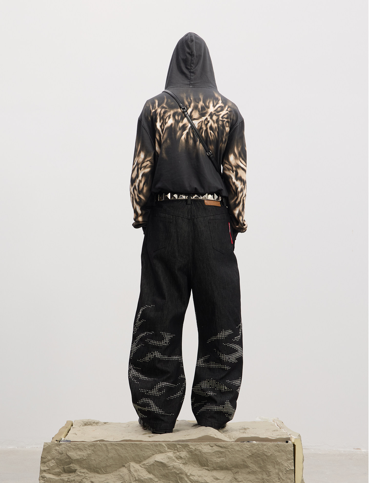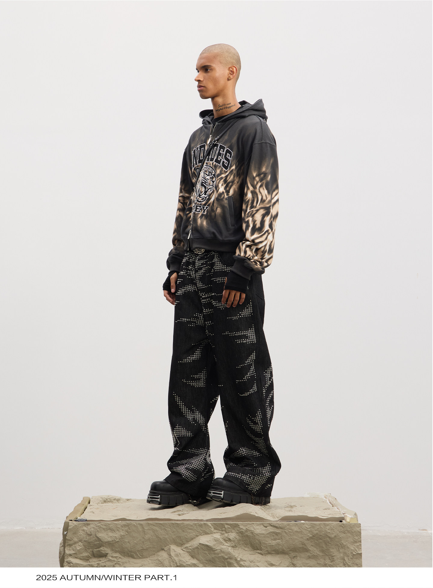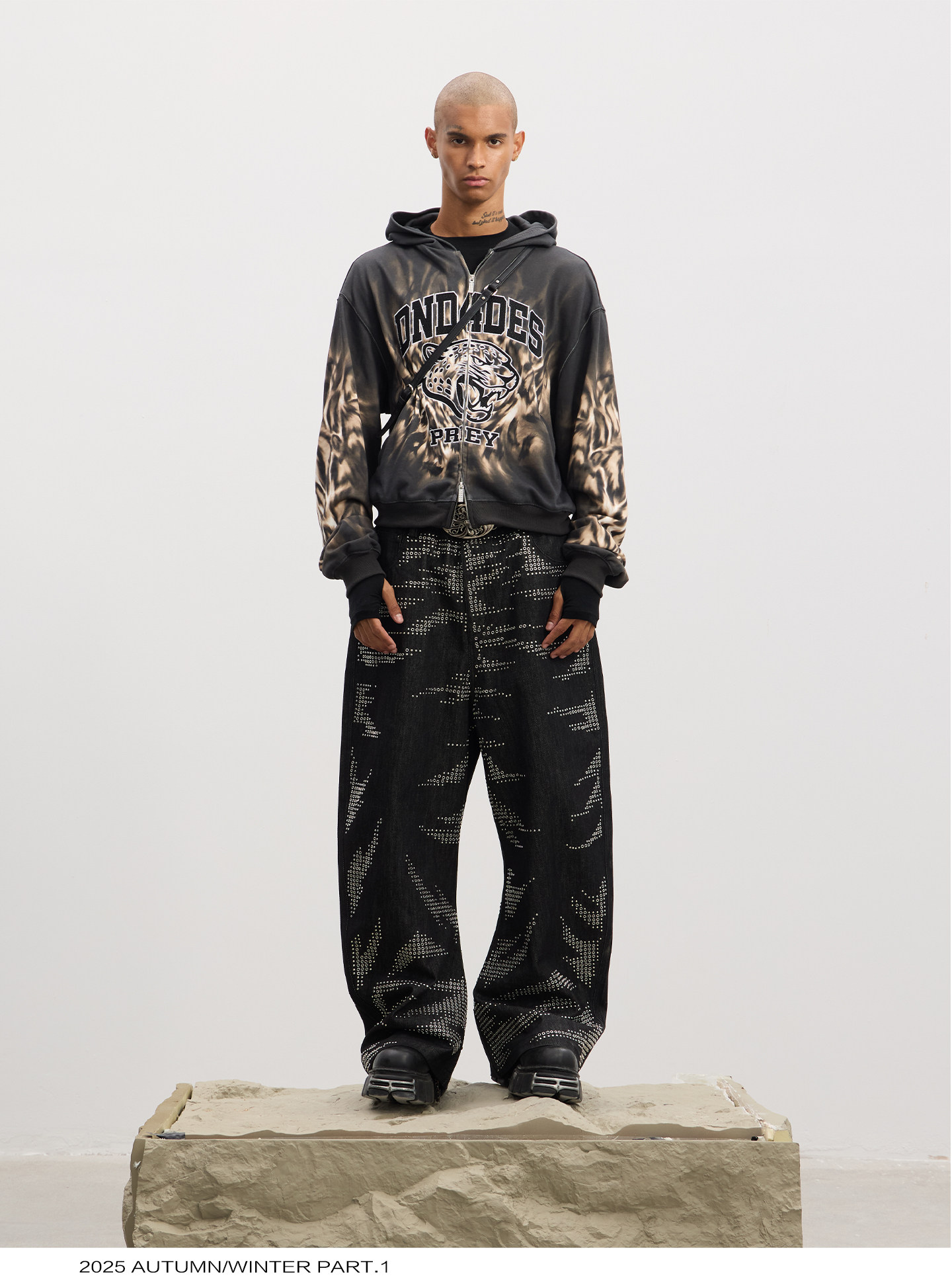DND4DES American original design 12oz denim original cow heavy industry tiger print hot sheet scimitar pants jeans