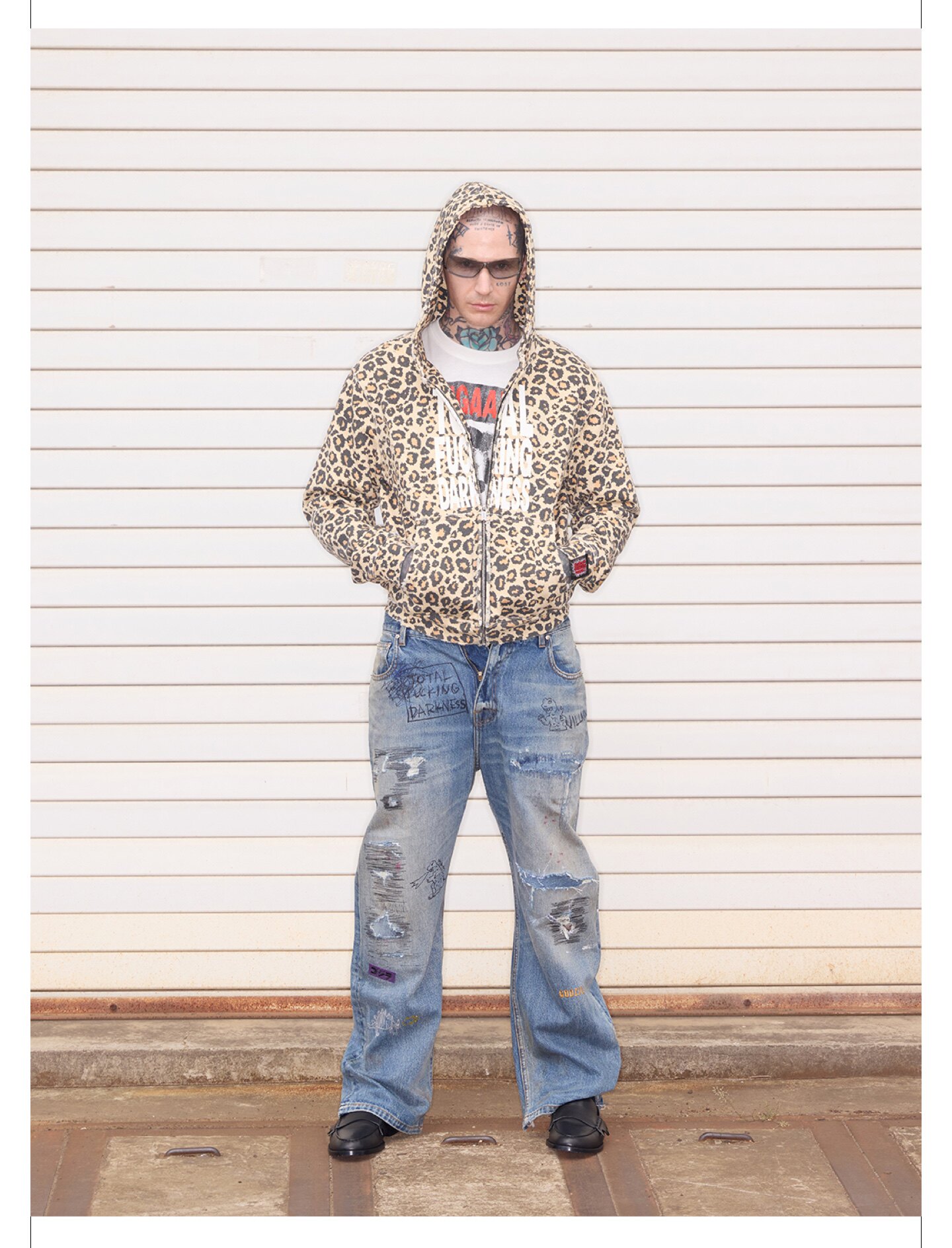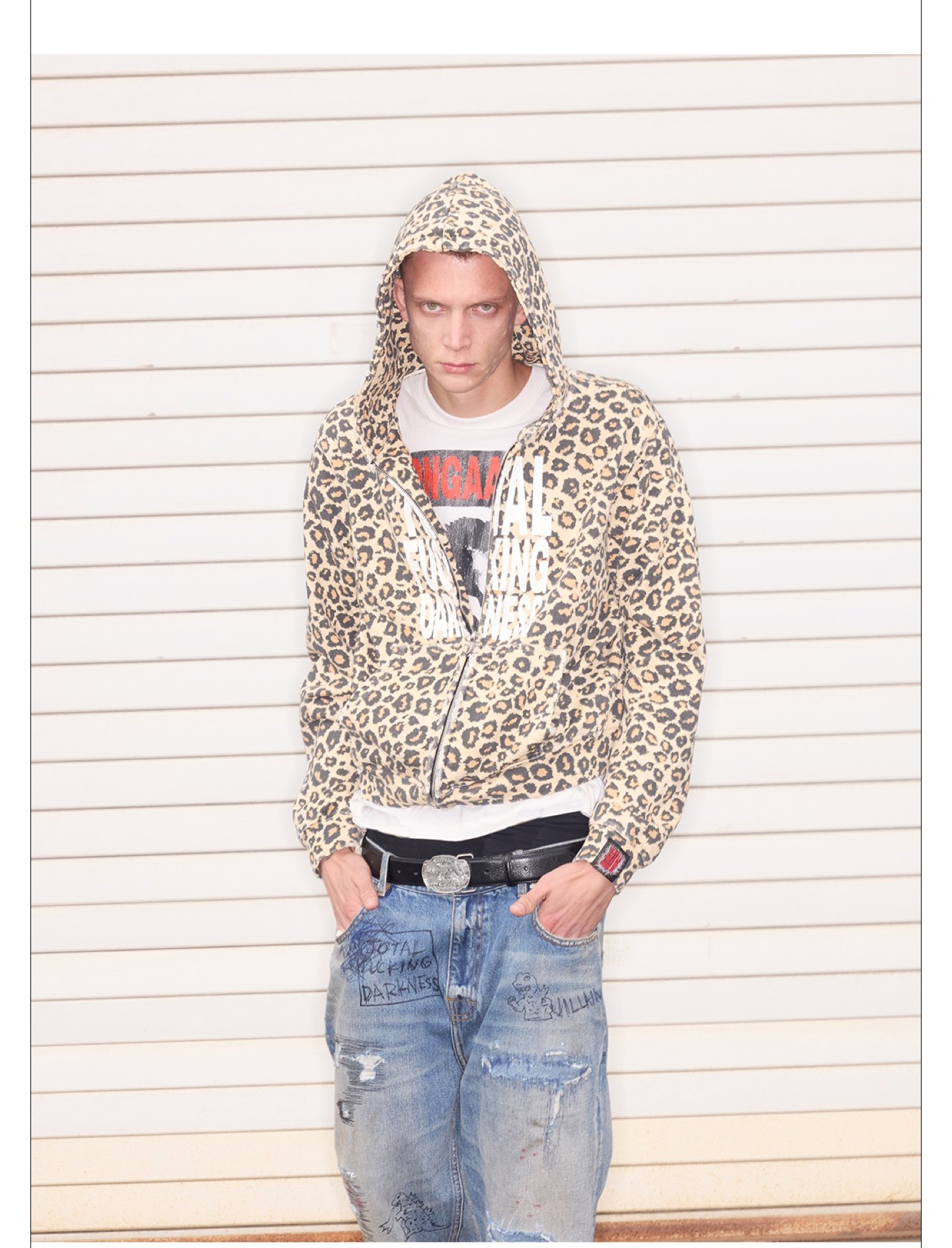 SONGAADON 26SS leopard print washed old hooded sweatshirt