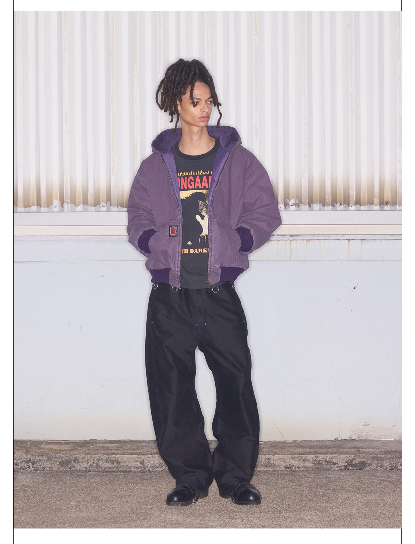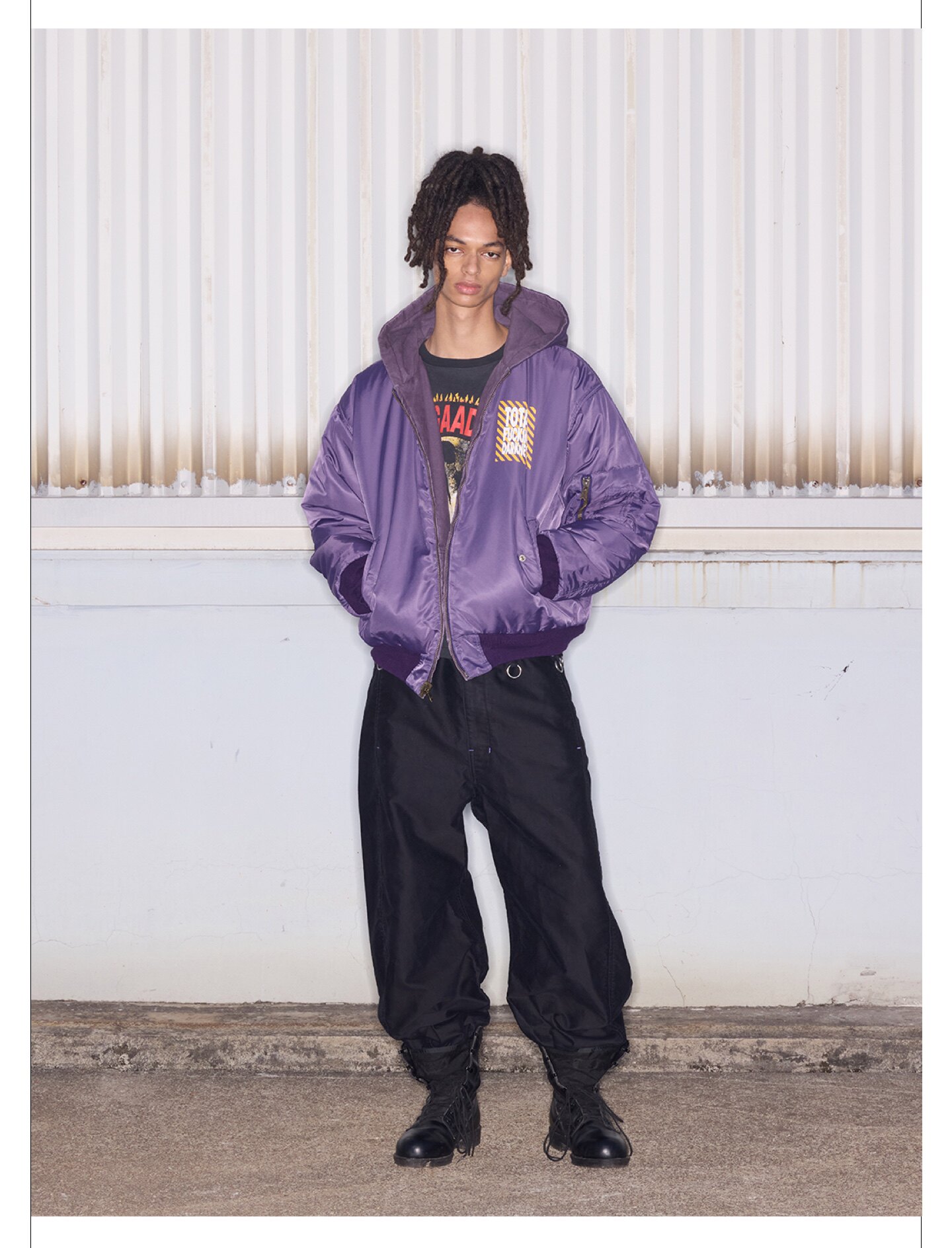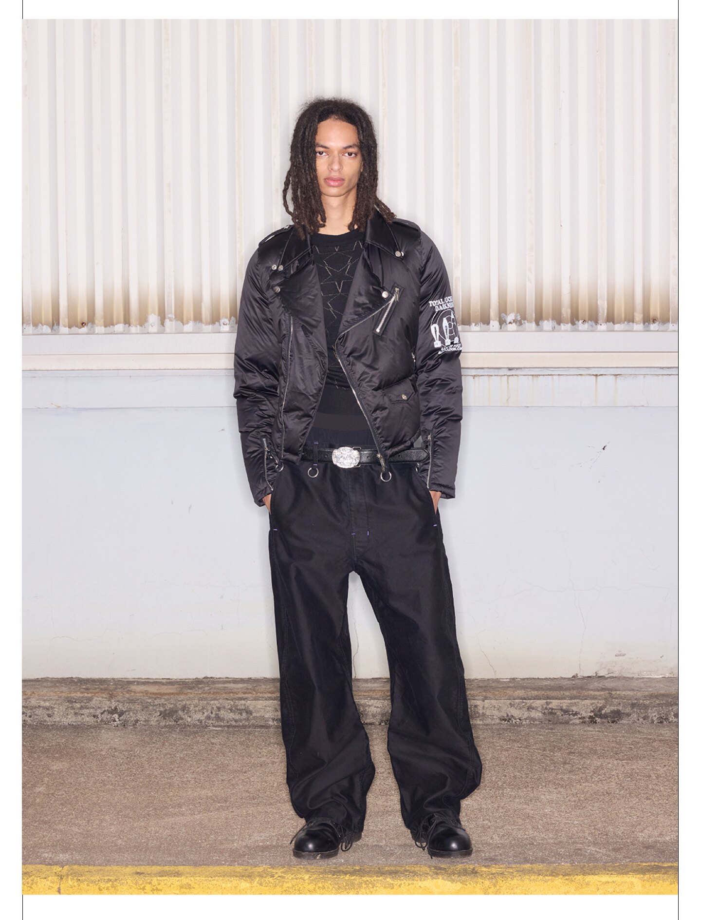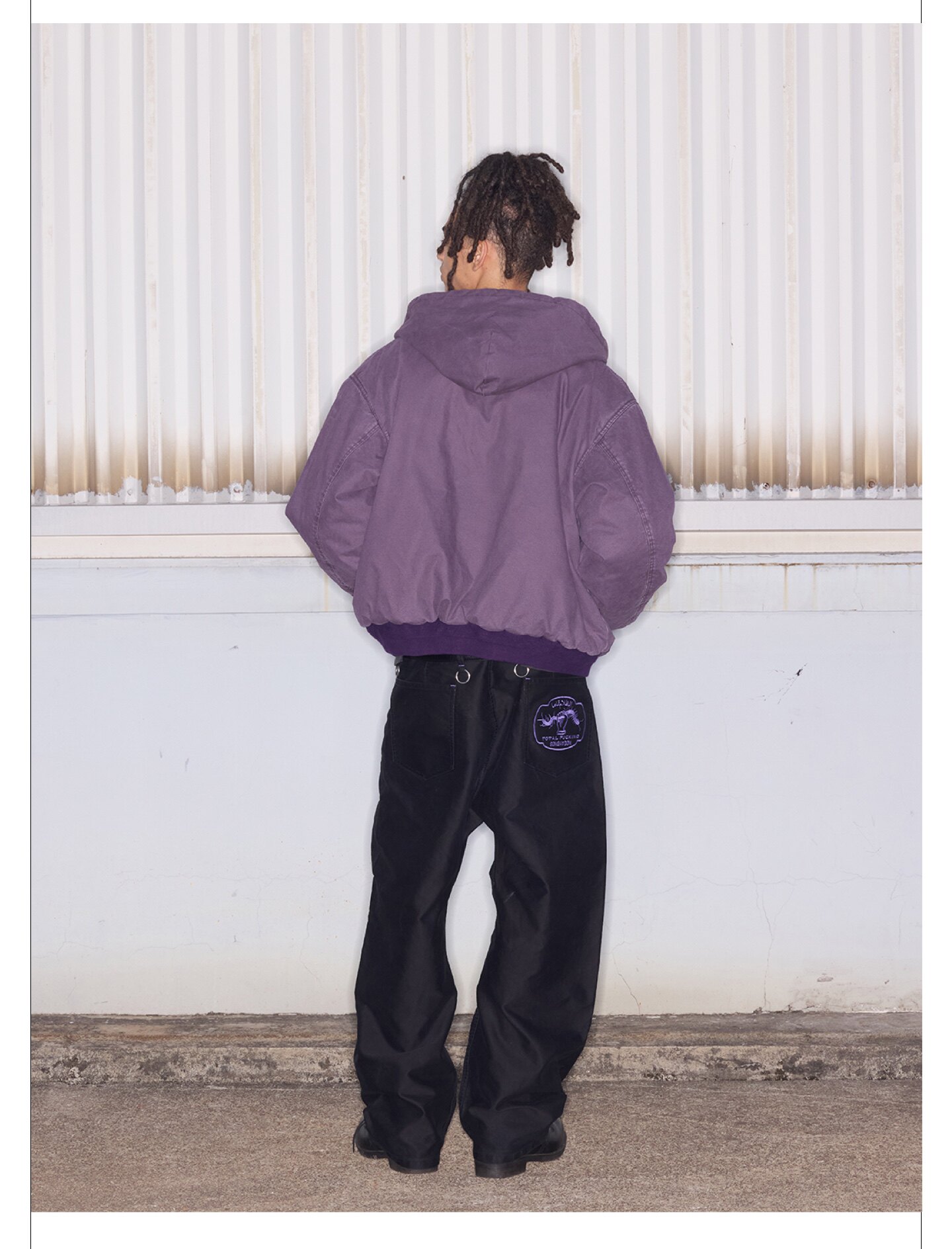 SONGAADON 26SS Purple Thread Embroidered Hoops Mole Skin Scimitar Pants